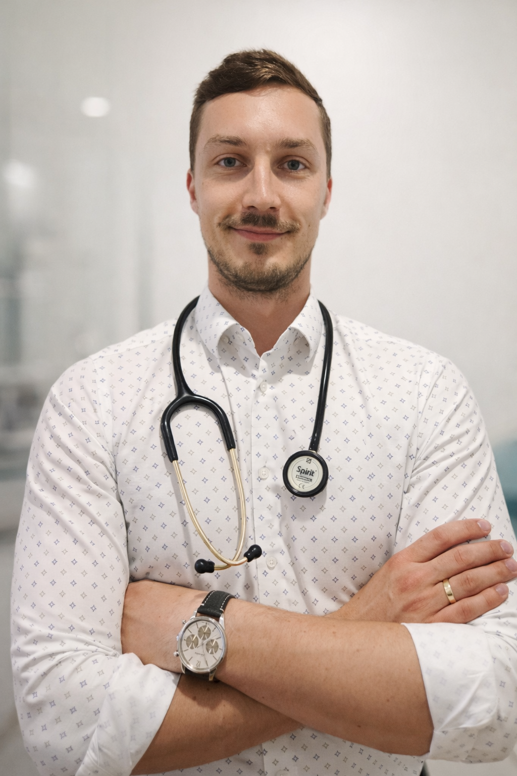 Posiadam trzy specjalizacje medyczne: choroby wewnętrzne, endokrynologia oraz andrologia kliniczna. Odbyłem szkolenia z zakresu ultrasonografii tarczycy i narządów moszny i posiadam certyfikat do wykonywania tych badań.